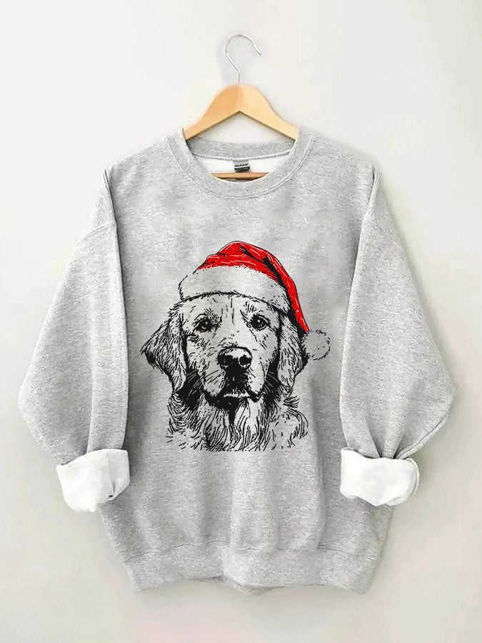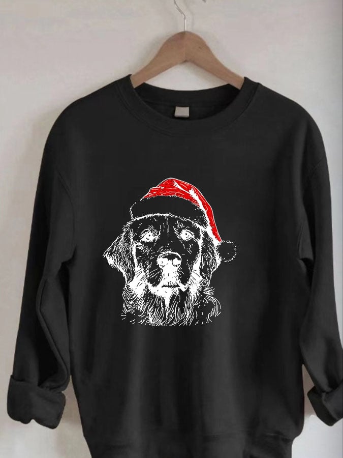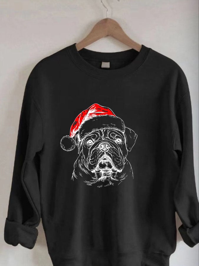 Women's Casual Christmas Dog Print Long Sleeve Sweatshirt