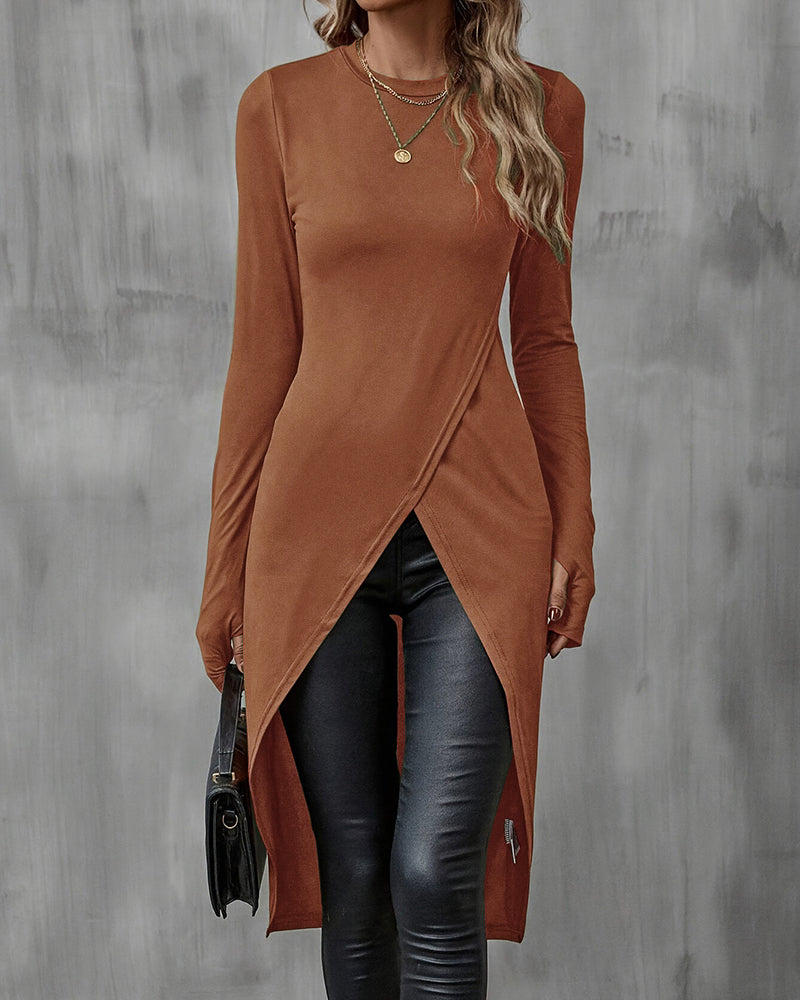 Sophisticated Vintage Split Hem Bodycon T-shirt