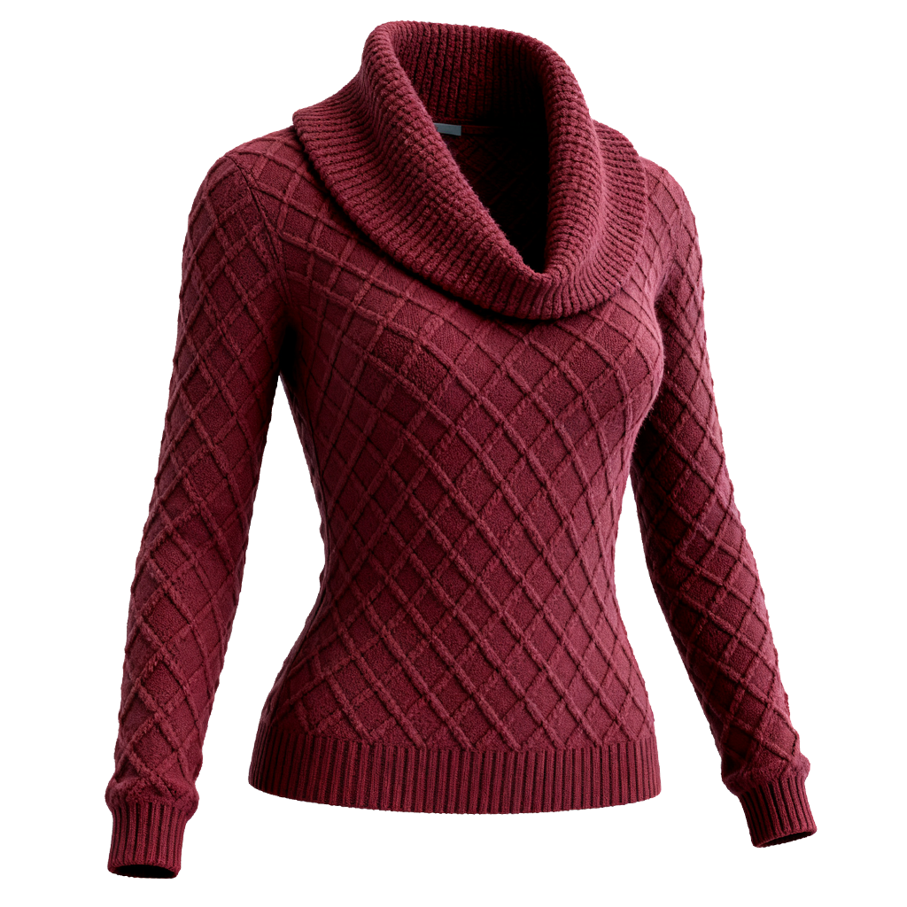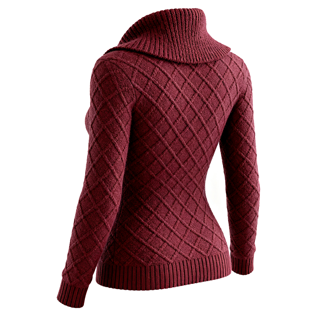 Women's Diamond Pattern Cable Knit High Neck Sweater Burgundy