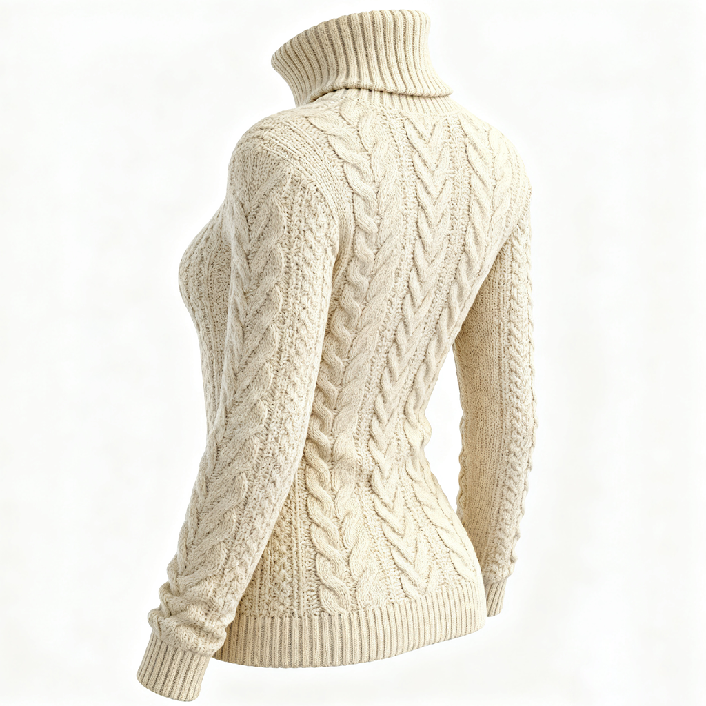Women's Cable Knit High Neck Sweater In Cream