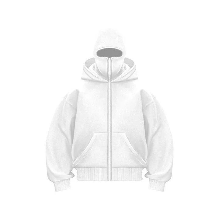 This unisex hoodie combines modern design with a built-in mask in the hood, perfect for protection and anonymity. Available in a variety of colors and sizes, it offers unique and practical style.