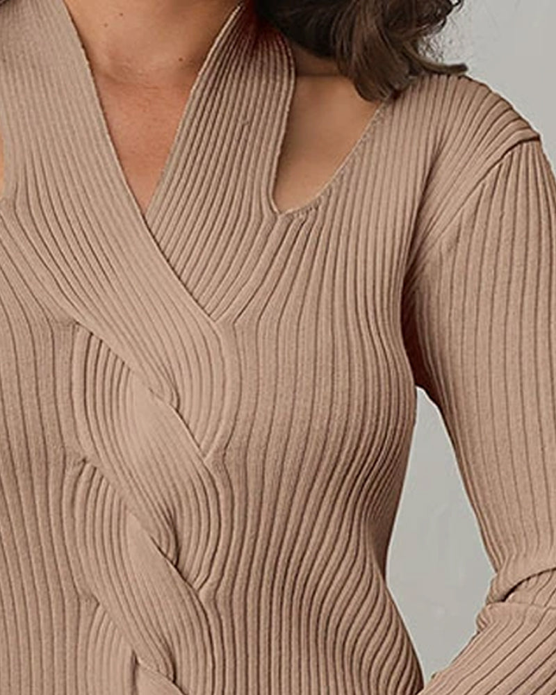 Chic V-Neck Twist Design Pit-Stripe Knit Top