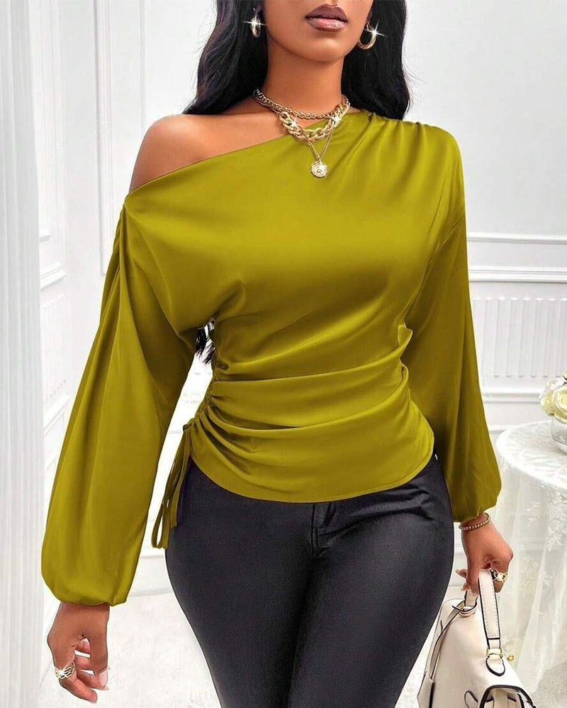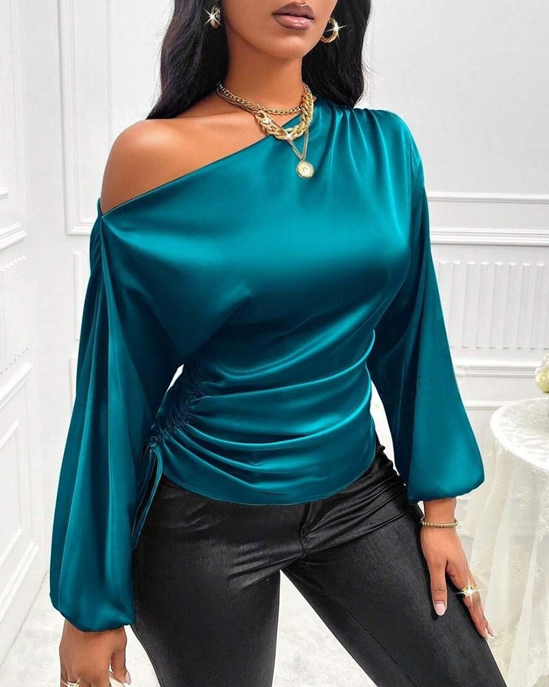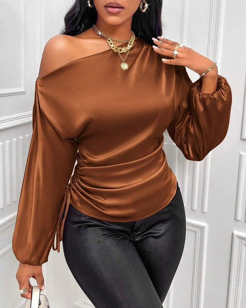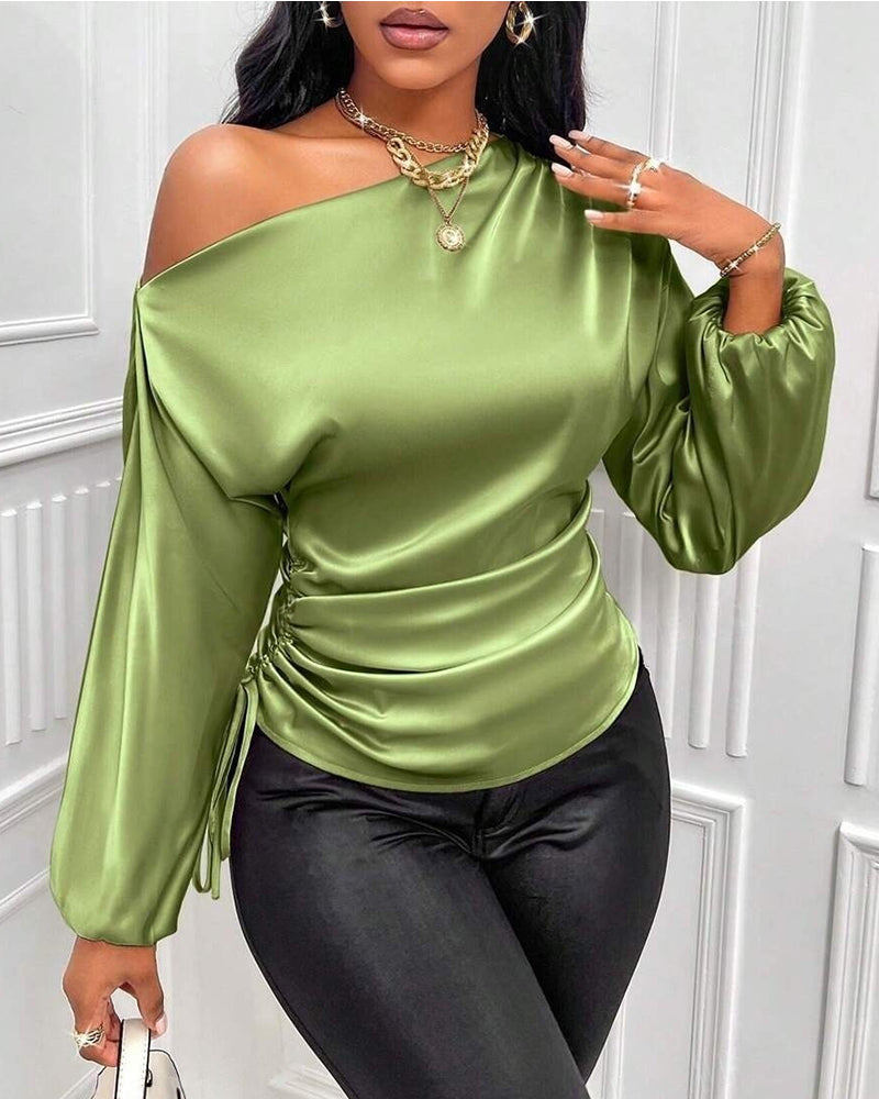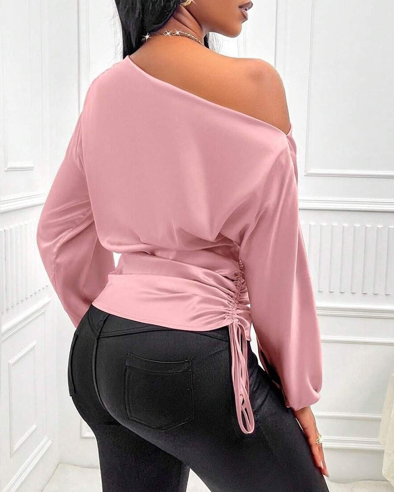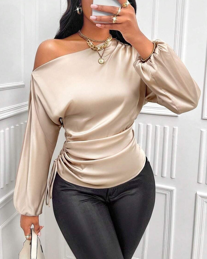 Elegant Satin Drawstring Off The Shoulder Blouse