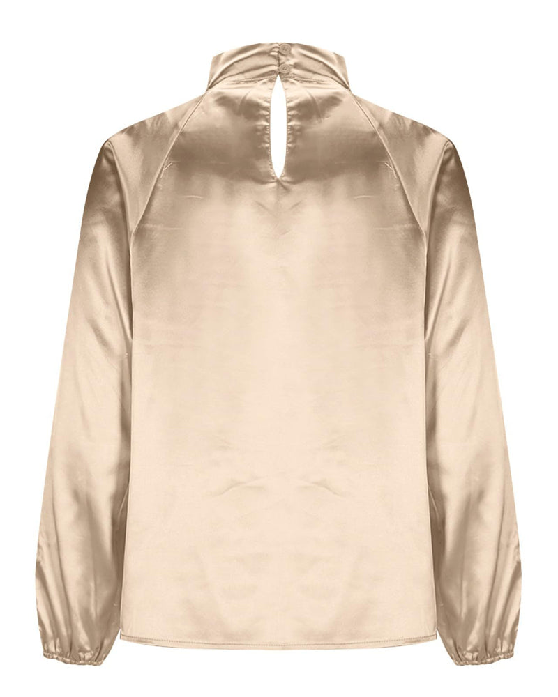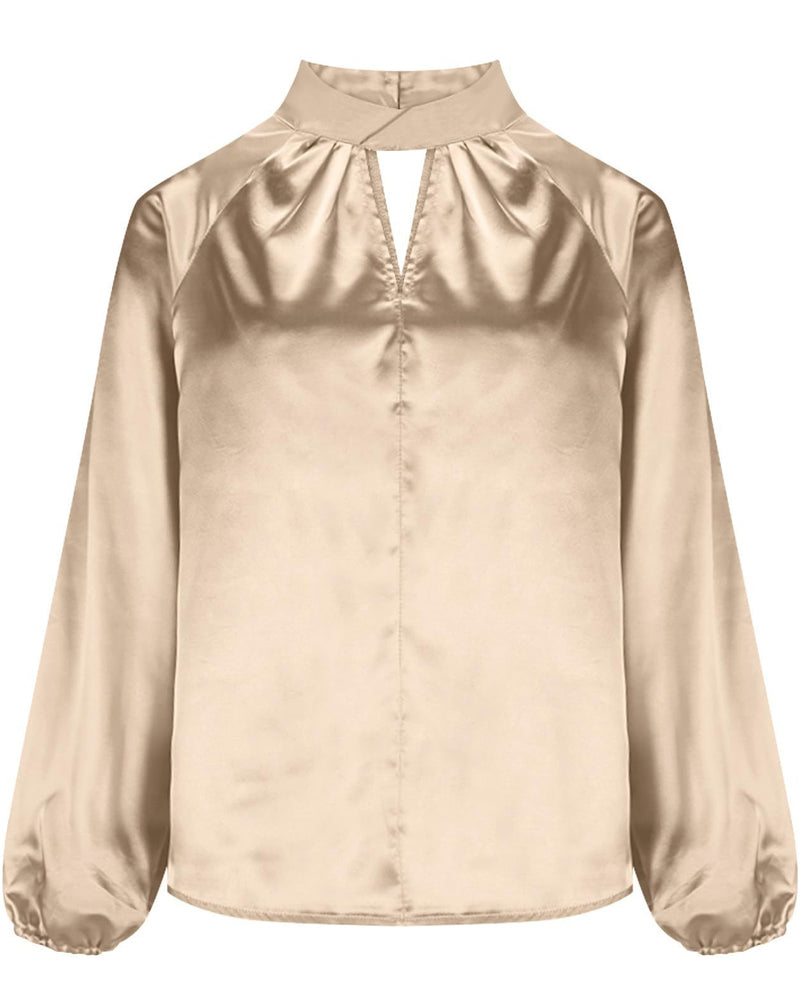 Elegant Satin Stand Collar Lantern Sleeve Blouse