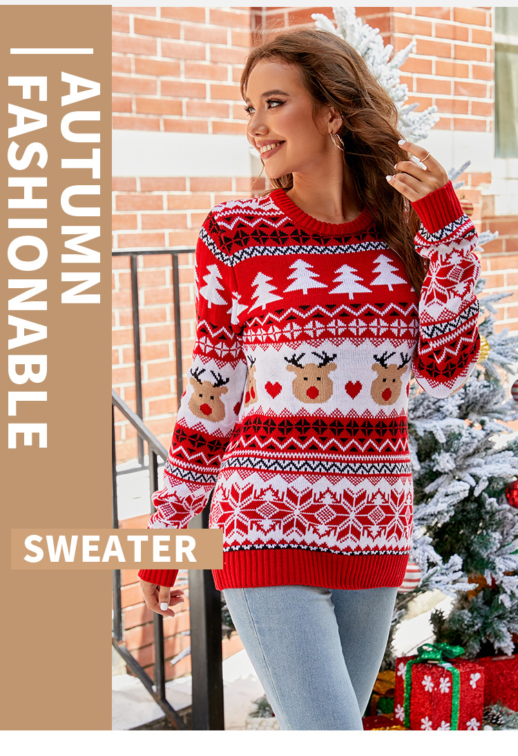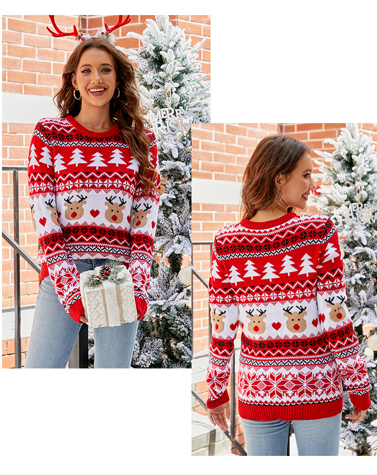 A warm Christmas awaits you with this festive sweater designed for women. Ideal for family gatherings and cool winter days, this sweater combines style and comfort with elegance. Its loose fit and soft knit ensure optimal comfort to celebrate the holidays in style.