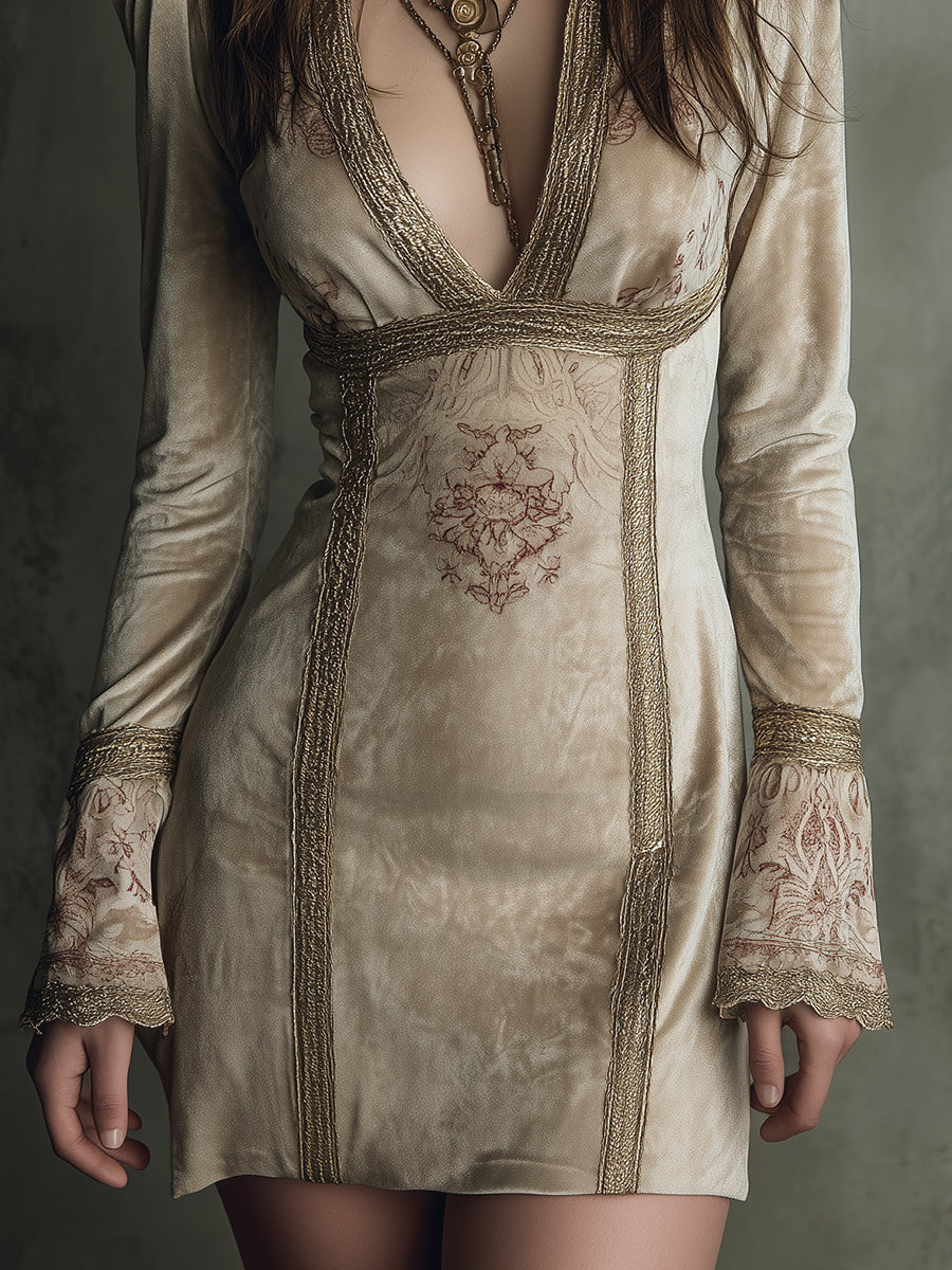 The Retro Totem Webbing Spliced Polyester Velvet Mini Dress is an ideal choice for those looking to combine classic fabrics with a unique, contemporary spin. Its combination of comfort, style, and versatility makes it a must-have item for fashion-forward individuals.